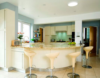 Italian style; Cool handless contemporary lines with loads of storage, in this light filled kitchen with a tranquil garden outlook.