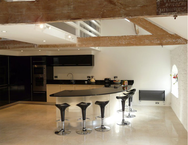 Note how the Arena Stone up-stands followers the line of the recesses with the corners chamfered to sit comfortably alongside the stone mantle detail.