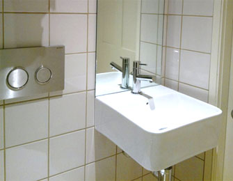 A small but beautifully formed wet room. The use of mirror and glass play well placed visual tricks in stretching these internal walls.